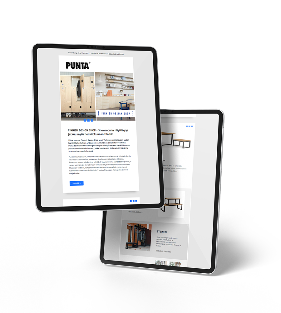 Yhteistyö Puntan kanssa käynnistyi keväällä 2021 visuaalisella uudistuksella, jossa modernisoimme yrityksen kotisivut ja graafisen ilmeen – kunnioittaen kuitenkin heidän vahvaa, tunnistettavaa logoaan. Uudistuksen myötä alkanut yhteistyö kasvoi nopeasti pitkäaikaiseksi kumppanuudeksi, jossa mainostoimisto Oljemark toimii Puntan luotettuna mainostoimistona.